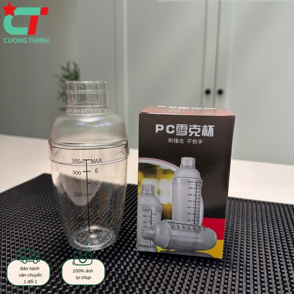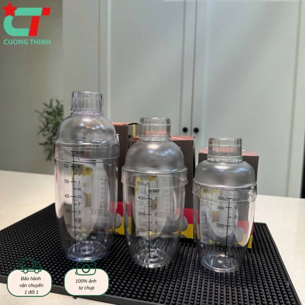 Bộ bình lắc + nắp pha chế nhựa chia vạch đen dung tích 350ml