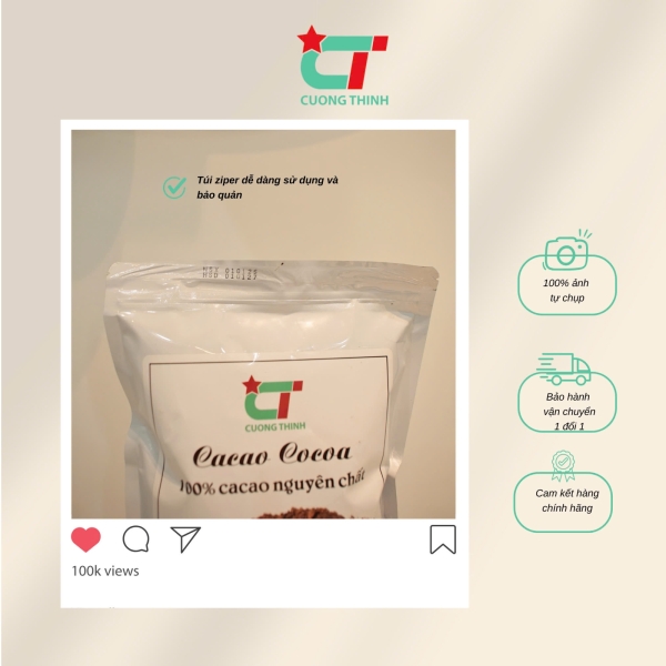 - Bột cacao 100% nguyên chất với hương vị truyền thống ngon đúng điệu có độ béo cao, đắng dịu, mịn, mùi thơm đặc trưng của cacao loại đặc biệt và dễ hòa tan trong nước.