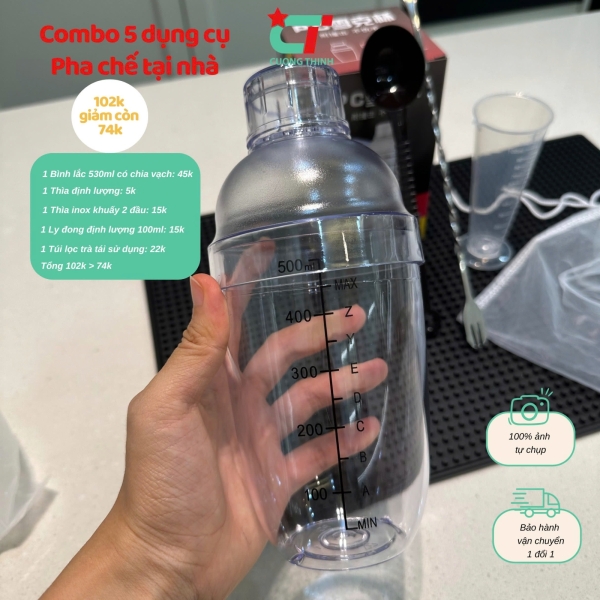 1 Bình lắc pha chế 530ml có chia vạch: 45k