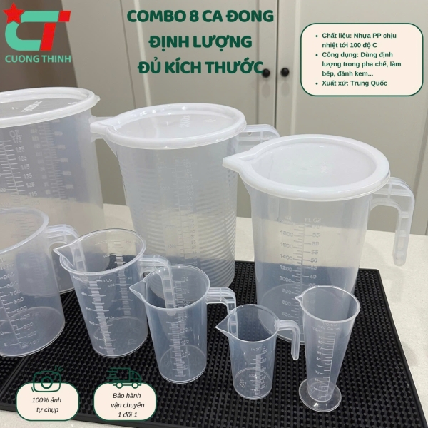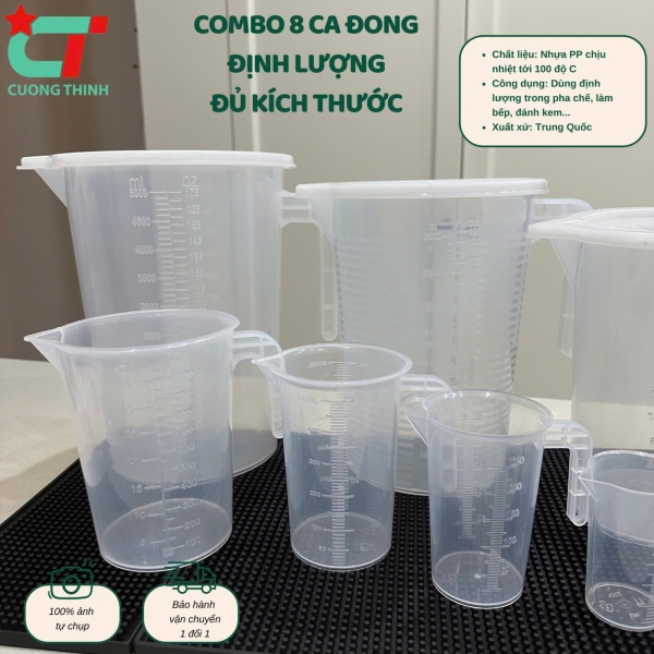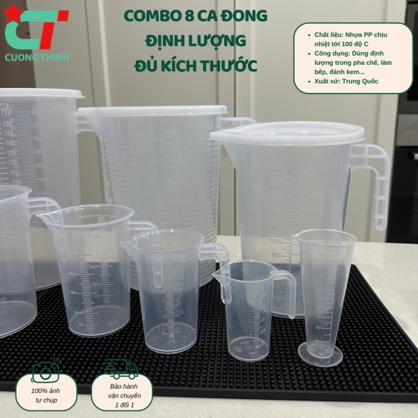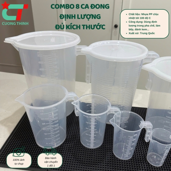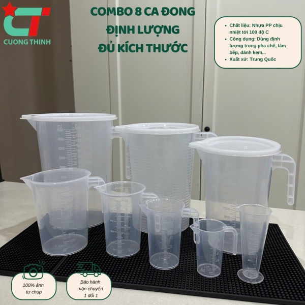 Combo 8 ca đong định lượng đủ size từ 5L đến 100ml dùng ủ trà, pha trà sữa, đong nguyên liệu