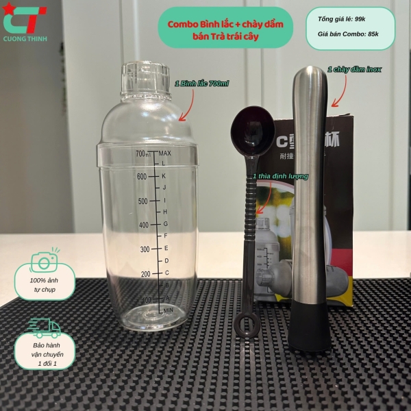 - Combo Bình lắc 700ml + chày dầm (tặng thìa): 85k