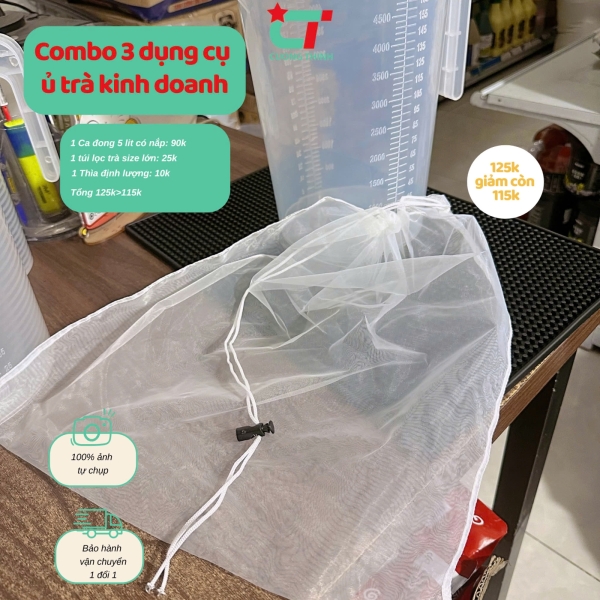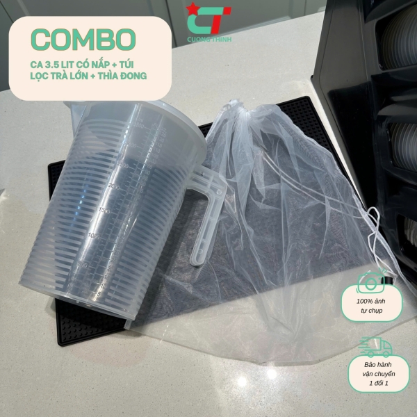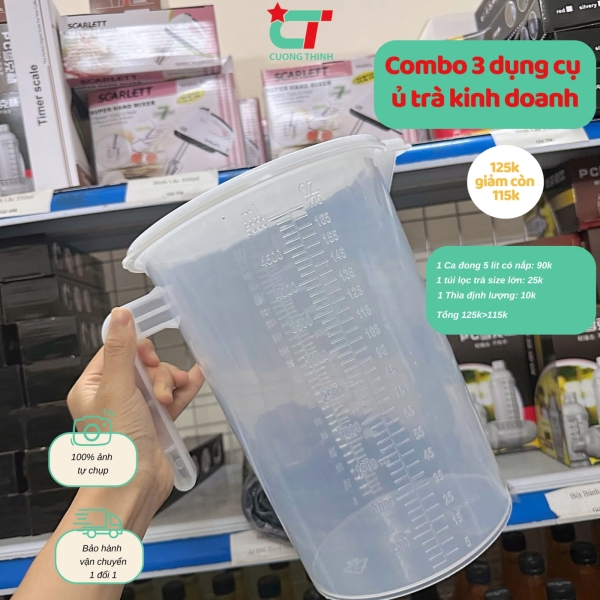 Combo dụng cụ ủ trà 5lit kinh doanh 3 món (ca đong có nắp, thìa định lượng)
