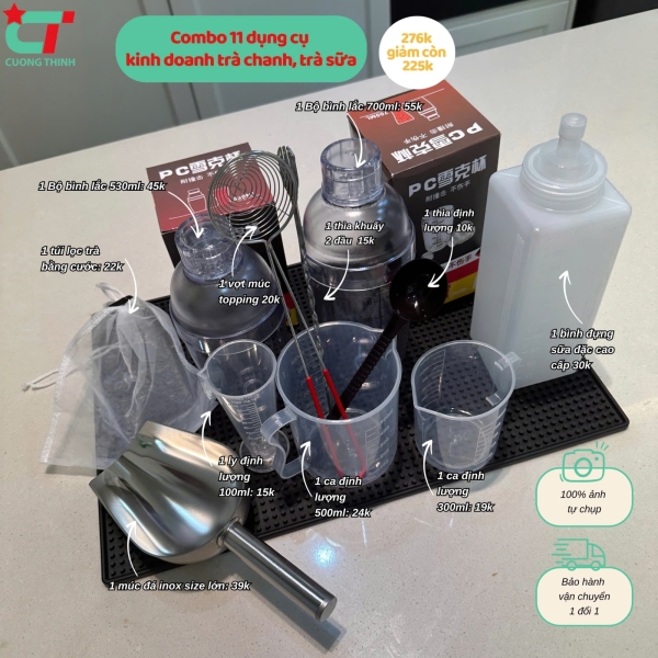 Combo 11 dụng cụ bán xe đẩy trà chanh gồm: