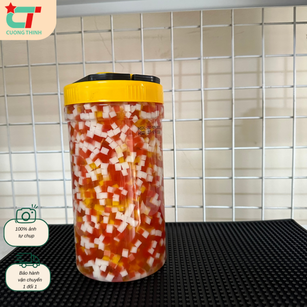 THÀNH PHẦN: Thạch dừa, đường cát, nước, chất bảo quản (E202, E211), chất điều chỉnh độ Acid (E330,E296), chất làm dầy (E415), chất ổn định (E466, E950), màu thực phẩm tổng hợp (E129, E124, E133) hương trái cây tổng hợp