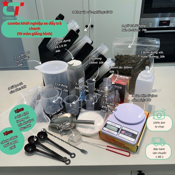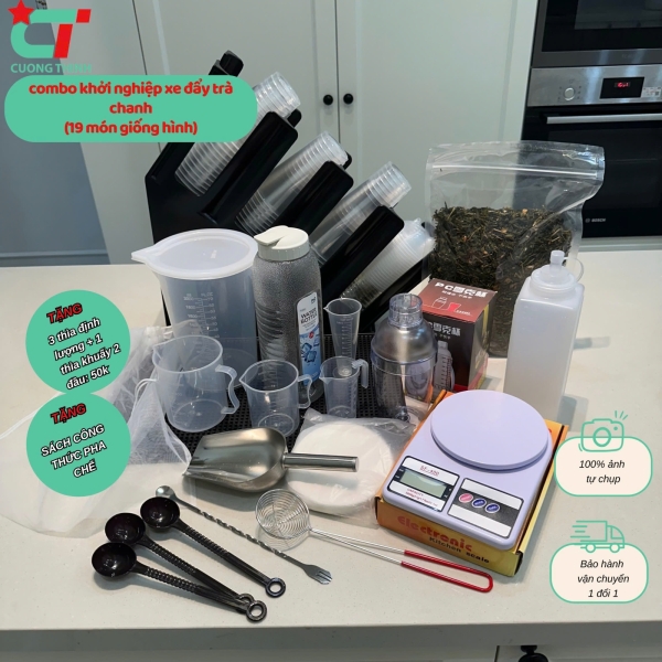 Combo khởi nghiệp xe đẩy trà chanh (19 món như hình)